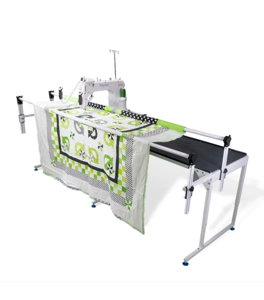The Q-Zone Queen offers a high-quality machine quilting frame at an affordable price. This frame feature a simplified 2-rail system and includes Quilt Clips for easy fabric control. Just clip the Quilt Clips to the quilt and rail for even tension without having to roll the fabric on a the rail.