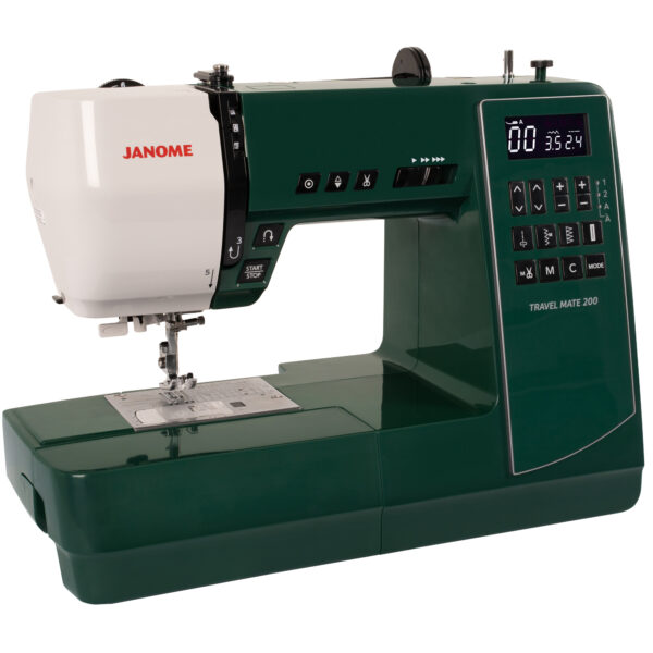 The Janome Travel Mate 200 computerized sewing machine offers an incredible Travel machine with a wide selection of quilting and applique stitches, a programmable block alphabet perfect for personalizing projects and quilt labels. An automatic Thread Trimmer, Hard Cover, and Extension Table are also included… plus a Bonus Quilting Kit!