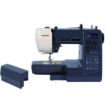 The Janome Travel Mate 50 computerized sewing machine offers a solid travel machine with a versatile stitch collection that will see you through most sewing tasks. A jam-proof top drop-in bobbin with 50 built-in stitches, plus an abundant selection of accessories, allows you to take on quilting, fashion, or craft sewing with ease and confidence. Hard Cover and Extension Table included… plus a Bonus Quilting Kit!