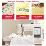 The SINGER® SE9180 sewing and embroidery machine is loaded with user-friendly features that sewists of all levels love like a large 7″ touch screen so you can clearly see what you are stitching, and an automatic needle threader that will get you sewing in no time at all. Also, mySewnet™ connectivity gives you a whole world of possibilities from app notifications of your embroidery progress, to creating designs from scratch and so much more. With over 150 built-in embroidery designs and over 250 stitches, you get the best of both worlds with the Singer SE9180 sewing and embroidery machine.